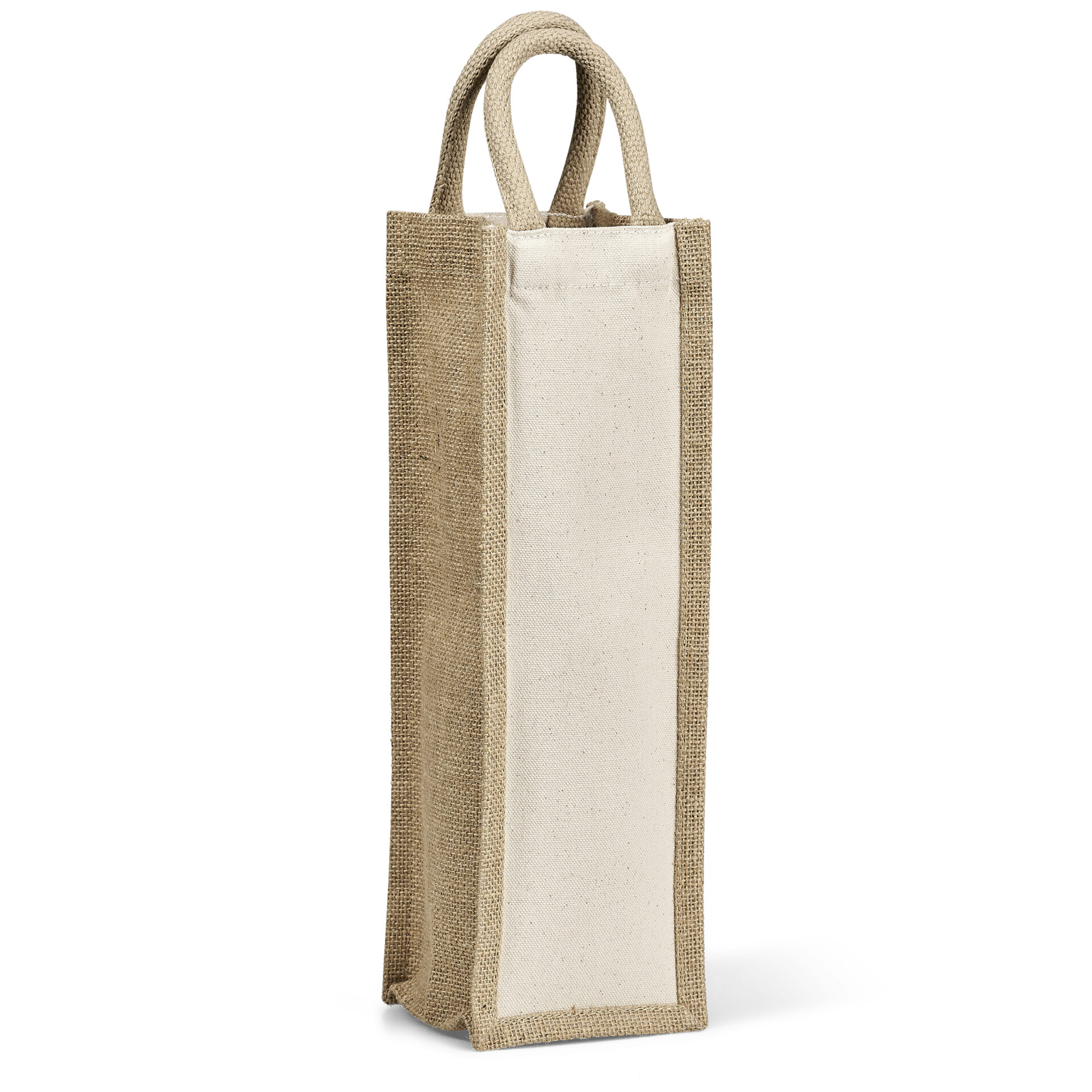 Made from a combination of natural cotton and jute materials, this bag can be used to carry your bottle of wine or as a gift bag when gifting a bottle of wine.