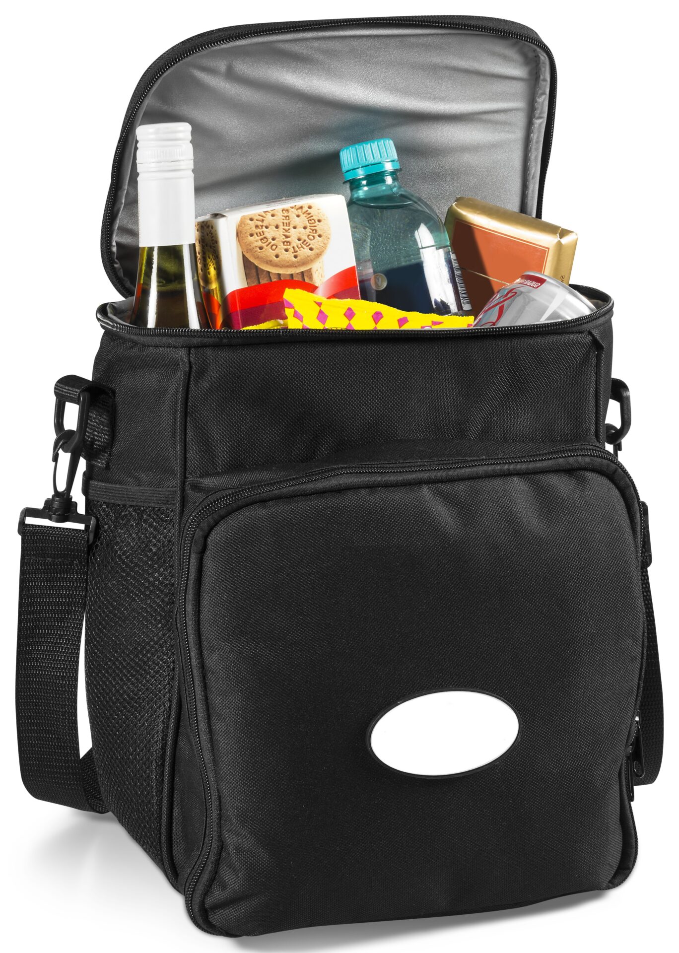 Main zippered compartment with PVC lining that holds up to 12 cans. Front zippered compartment with 2 x PP goblets, 2 x napkins,2 x knives & forks , 1 x waiters’ friend & 1 x butter knife.