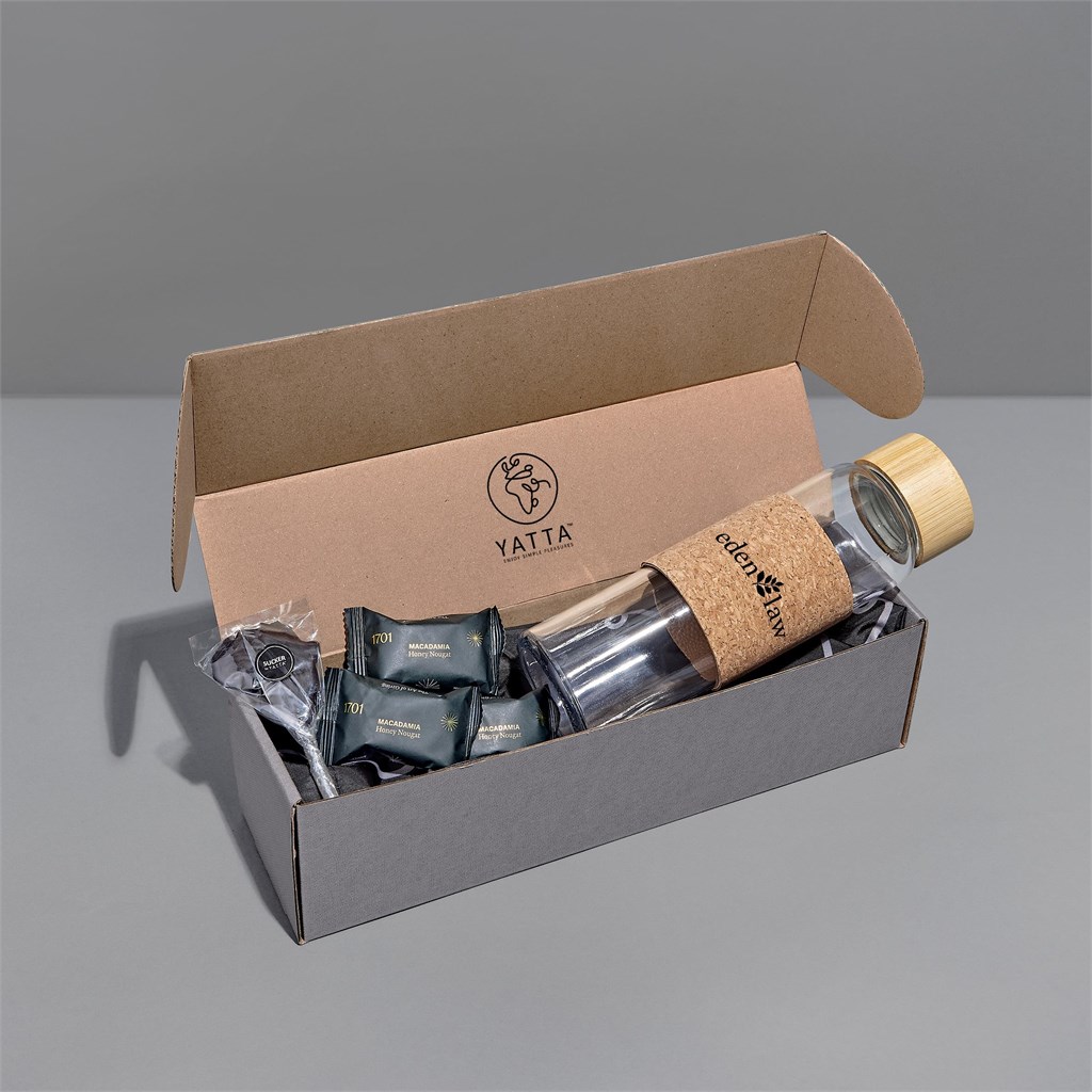 The Yatta range of hampers is expertly crafted to provide a delightful experience with a curated selection of premium items and edible treats. The edibles are elegantly presented in a Yatta drawstring bag, and this hamper is further encased in a premium grey gift box.